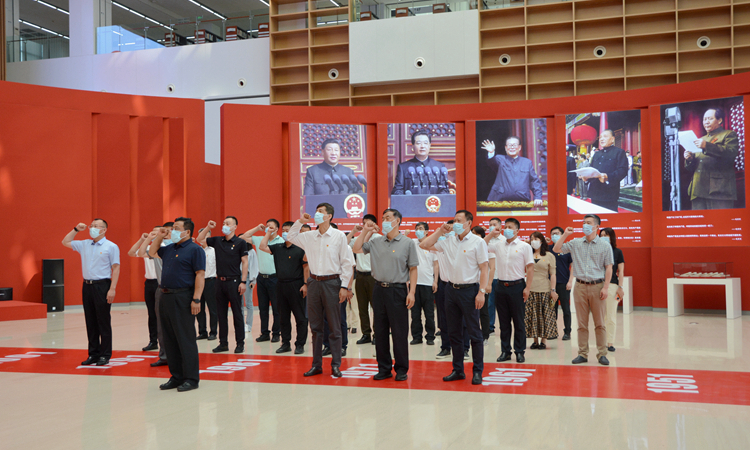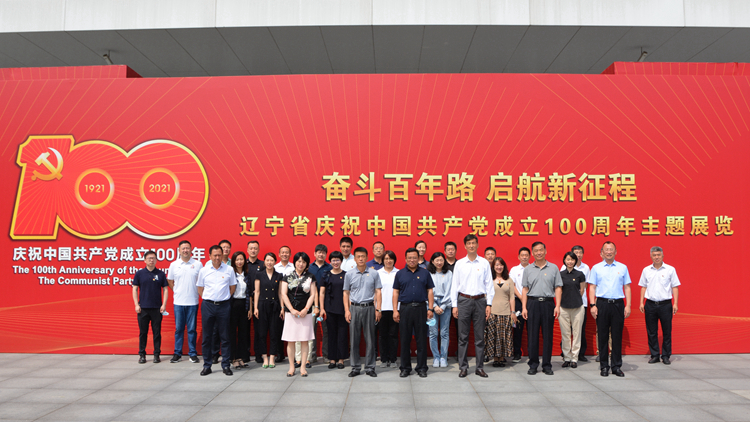 在辽宁省庆祝中国共产党成立100周年主题展览正厅,姚守齐带领党员干部面向鲜红的党旗举行了庄严的重温入党誓词仪式。