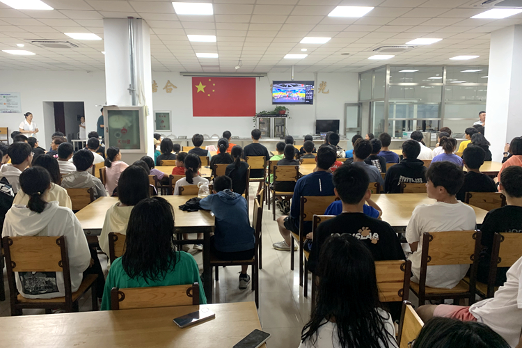 为进一步加强我校运动员爱国主义教育,坚定理想信念,引导运动员铭记历史、缅怀先烈、珍爱和平、开创未来,传承弘扬伟大的抗战精神,积极培育和践行社会主义核心价值观。8月31日,竞技体校在食堂组织所有运动员集体观看《“请党放心,强国有我”——2021辽宁省开学第一课暨百名好少年讲百年党史故事(云)展演》。