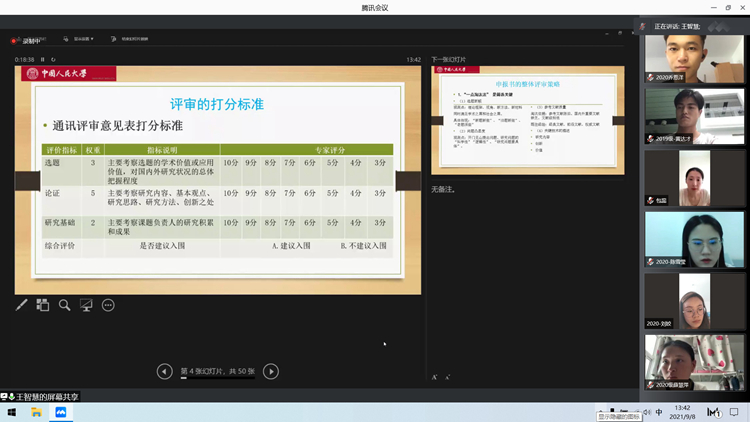 9月8日,武术与舞蹈学院采用线上培训的方式,聘请中国人民大学博士生导师、学科带头人王智慧教授开展“社科类课题申报的逻辑构思与文本呈现”讲座。讲座由副院长于海教授主持,武术与舞蹈学院全体干部、教师及研究生参加了本次学术研究培训。