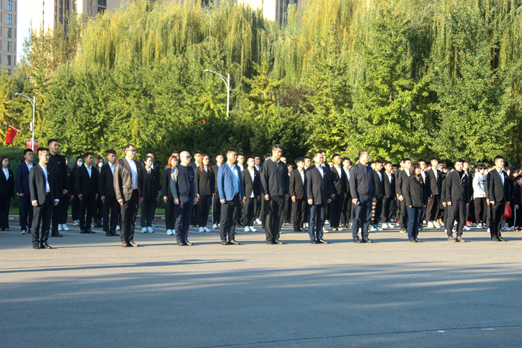 上午7时,迎着初升的太阳,升旗仪式正式开始,我校大学生国旗护卫队迈着矫健的步伐,护送国旗走向升旗台。在雄壮的国歌声中,鲜艳的五星红旗如旭日般冉冉升起,在场师生全体肃立,向国旗行注目礼,向庄严神圣的国旗表达最崇高的敬意,祝愿祖国繁荣昌盛。
