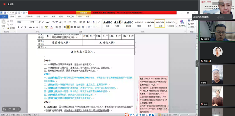 9月29日,学院邀请华东师范大学博士生导师杨建营教授,以“课题申报书的撰写及研究成果的呈现——以学校武术教育的相关课题为例”为题,召开线上学术讲座,学院全体干部、教师及研究生参加。