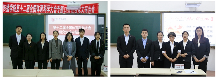 第十二届全国体育科学大会评审工作已经结束,管理与新闻传播学院所辖专业研究生共入选17篇专题口头报告和11篇墙报交流。按照大会总体部署和学校相关要求,为增进相互学习交流,管理与新闻传播学院于10月14日在教学楼124教室组织开展了新闻与传播专业、新闻与传播(体育新闻传播学)研究生专题报告会。会议由分别由尹媛洁等十名同学进行口头报告,朴勇慧教授、王晓晨副教授进行点评。新闻与传播专业、新闻与传播(体育新闻传播学)专业和体育管理学专业2020级、2019级研究生,共约50余名师生参加了此次活动。报告会由网络与新媒体教研室主任袁秋菊主持。