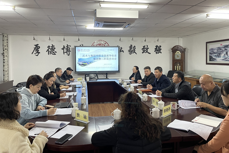 10月28日上午,武术与舞蹈学院在武术体操馆会议室召开全面教学检查整改第二阶段启动会。邀请校内专家张日辉、邹英、林松、付哲敏教授指导工作,学院领导班子出席会议。会议由副院长王莉丽主持。