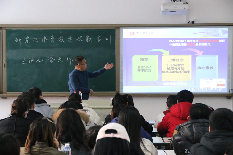 为加强毕业年级体育类研究生说课和面试能力培养,提高就业竞争力,11月11日下午,研究生工作部邀请体育教育学院学校体育学教研室主任徐大林副教授,在教学楼106教室对2019级60余名体育类研究生就教学设计与说课进行专题培训,研究生工作部长刘振强、副部长林大志到场参与活动。