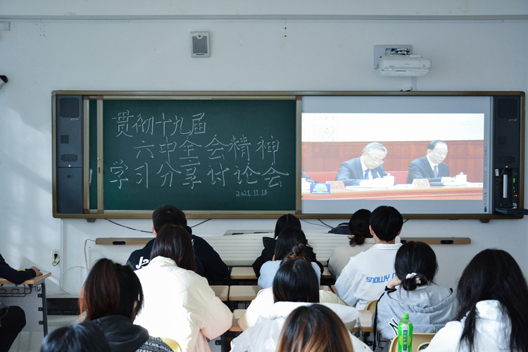此次活动以集体学习全会公报、座谈交流的形式开展,与会学生集中观看《党的十九届六中全会公报》后,对学习心得、体会进行交流,同学们纷纷表示,将要更加紧密团结在以习近平同志为核心的党中央周围,增强“四个意识”、坚定“四个自信”、做到“两个维护”,以党的十九届六中全会精神为指引,努力学习,建功立业,担负起赋予新时代青年的责任与使命。