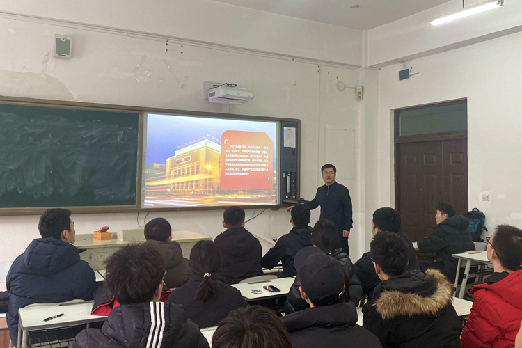 11月21日下午,为深入推进党史学习教育,真正做到学史明理、学史增信、学史崇德、学史力行,不断提高政治判断力、政治领悟力、政治执行力。研究生党总支书记刘振强在教学楼116教室为2020级8班全体同学讲授了《学习建党百年历史:明理、增信、崇德、力行》主题形势与政策课。