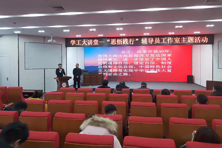 11月26日下午,“思悟践行”辅导员工作室在图书馆二楼报告厅开展首期活动,活动邀请思想政治理论课教学科研部教师牟向东以“我国强国战略的启示”为主题进行交流。党委学生工作部负责人、各学院党总支副书记、全体辅导员参加了此次活动。“思悟践行” 辅导员工作室负责人王彪主持本次活动。