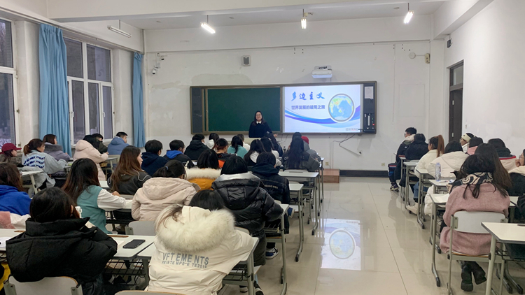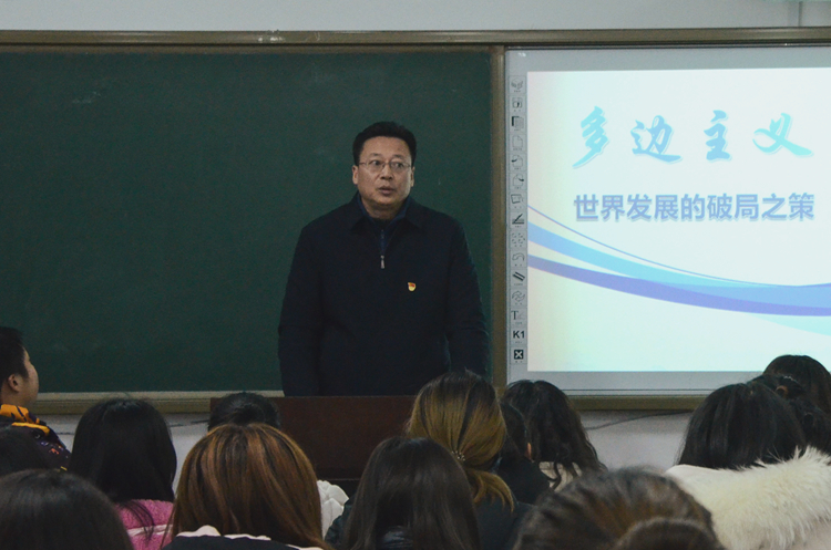 张建波和李芳从当今时代面临的四大课题,照亮前行之路的多边主义,践行多边主义的中国行动等三个方面为大家讲述了当今世界的形式与中国将如何行动,使同学们全面了解了当今世界发展的新格局,深刻认识到中国在解决当今世界发展问题和国家之间矛盾与差异中所贡献的中国担当、中国智慧和中国方案。
