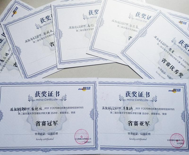 部分获奖证书