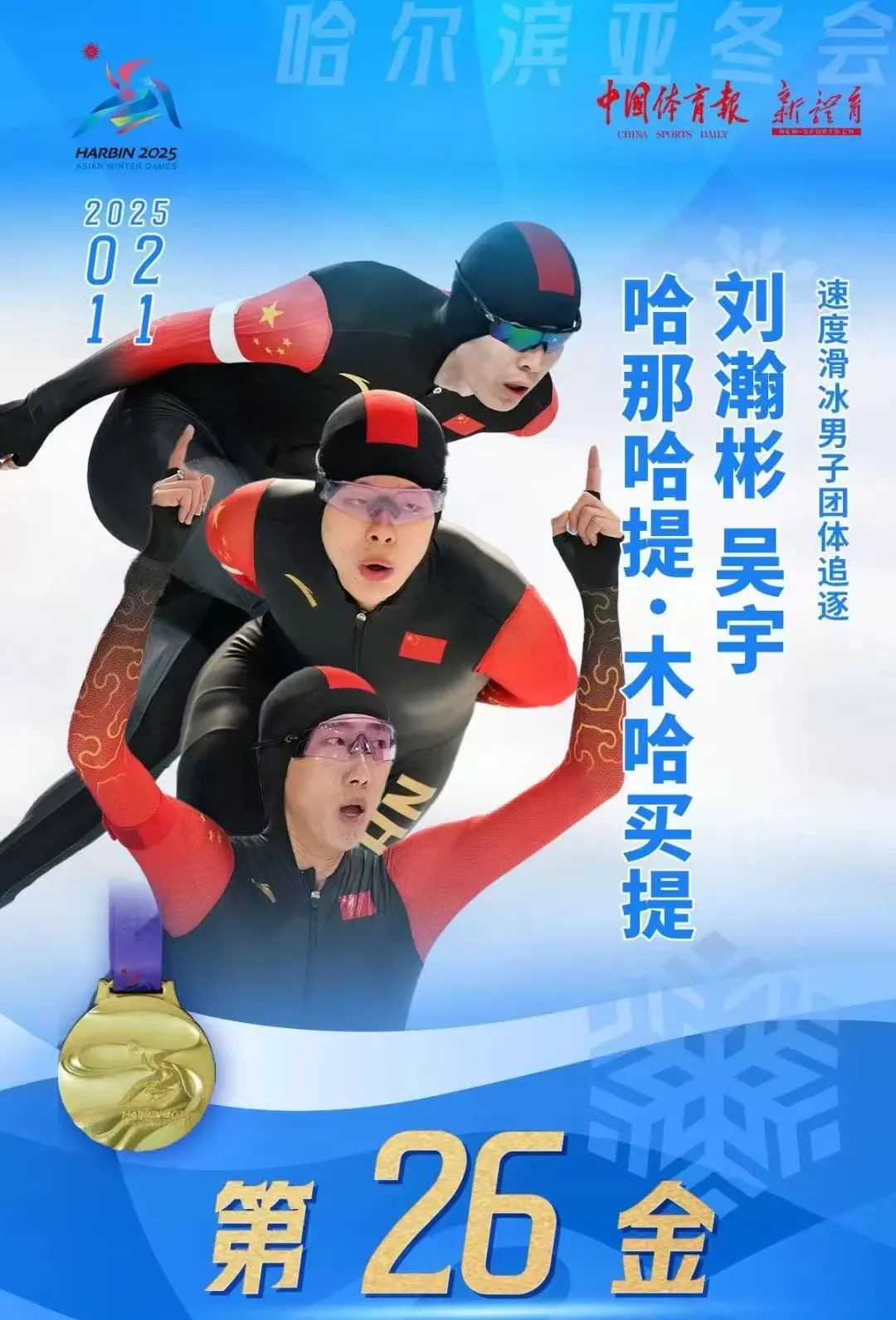 2月11日,在哈尔滨亚冬会速度滑冰男子团体追逐比赛中,沈阳体育学院运动员吴宇与队友默契配合,以3分45秒94的成绩勇夺冠军,为中国体育代表团夺得本届亚冬会第26枚金牌。 (来源:中国体育报) 网址链接:喜报:沈阳体育学院运动员吴宇在哈尔滨亚冬会速度滑冰男子团体追逐比赛中夺冠 新闻作者: 责任编辑:全魁博 新闻日期:2025-02-15 点击:次