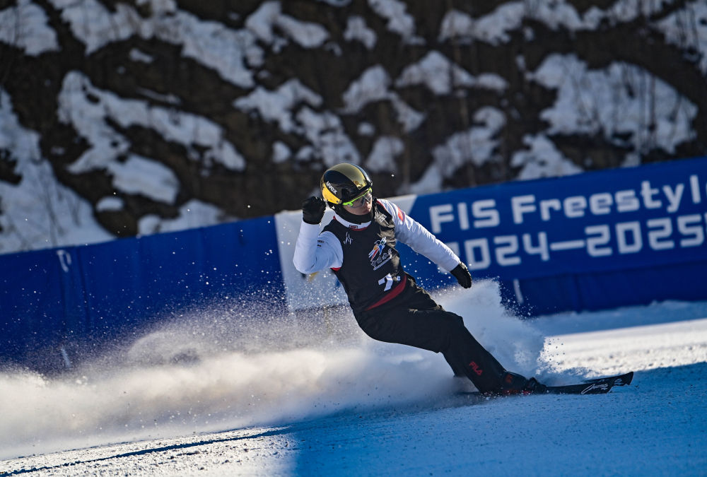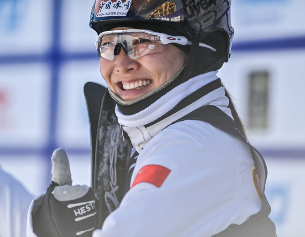 2月24日,中国队徐梦桃在比赛后庆祝。新华社记者 颜麟蕴 摄
