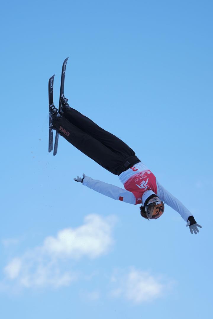 中国青年报客户端哈尔滨2月9日电(中青报·中青网记者 梁璇/文 李隽辉/摄 聂亚栋/海报)在今天上午举行的亚冬会自由式滑雪女子个人空中技巧决赛中,34岁的老将徐梦桃顺利摘得金牌,她在第一轮就跳出97.99的高分,展现了绝对实力。本场比赛,徐梦桃和3名05后中国小将主场迎战来自日本和哈萨克斯坦的选手,最终,徐梦桃、陈雪铮包揽金银牌。