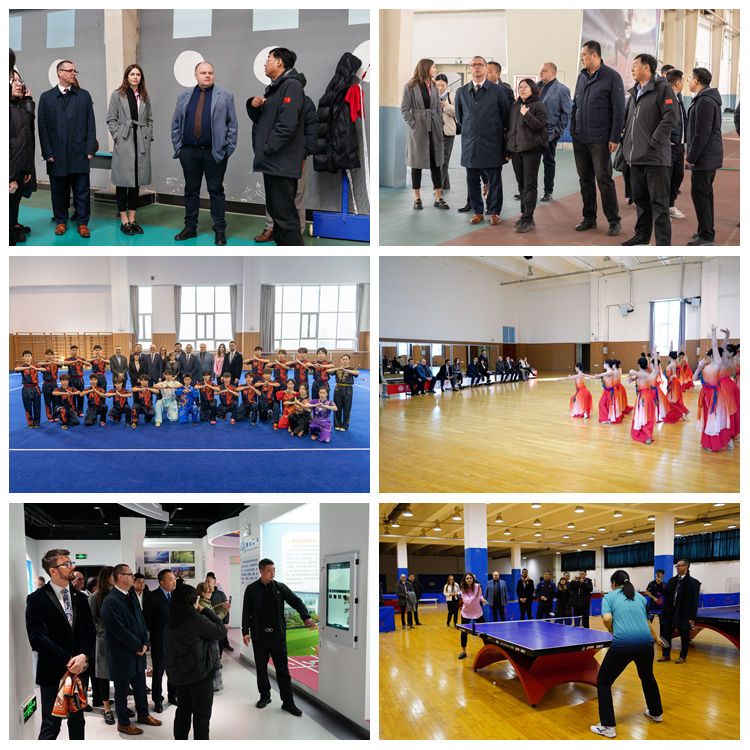 下午,访问团先后参观了沈阳体育学院夏训跳台、冰上运动综合馆、体能训练中心、篮排球馆、田径馆,观摩武术套路与体育舞蹈汇报演出,考察运动生命科学馆及重点实验室,参与乒乓球项目体验活动。沈阳体育学院服务师生教学、训练、科研方面的基础设施建设成果广受来访嘉宾赞誉。