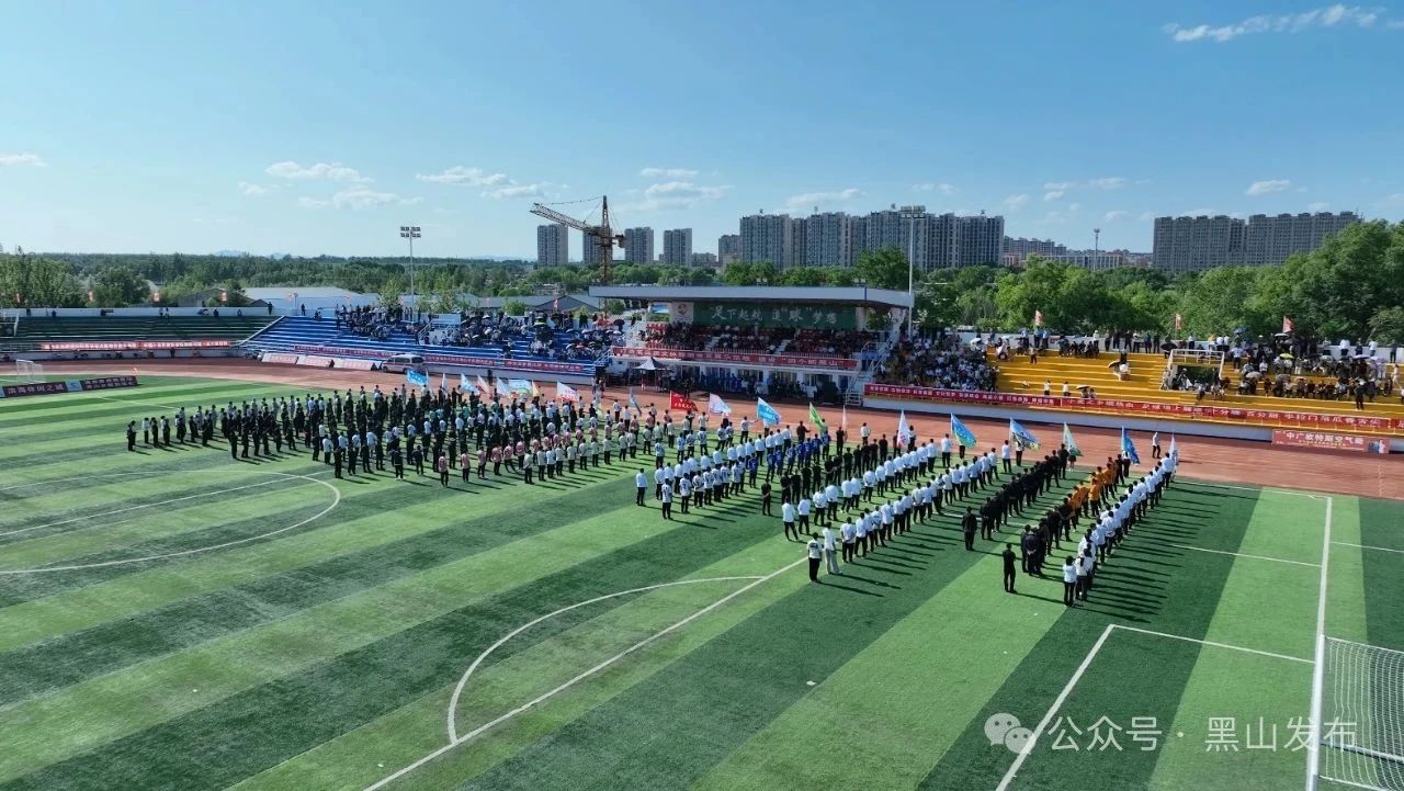 开幕式开始前进行了节目展演。50名朝气蓬勃的小鼓手率先登场,架子鼓表演《鼓舞中国》《吸引》激越昂扬,鼓槌起落间编织出足球的韵律,诉说着黑山的足球热情,迸发出夏日绿荫的无限活力。600余人表演的团体操《足下起航 追“球”梦想》接续上演,随着队形不断变换,迅速拼出“足下起航 追“球”梦想”“黑山乡超”字样以及巨型足球和少年踢球的图样,视觉冲击力震撼人心,演绎着足球运动的激情与力量。舞蹈《山河无恙 吾辈自强》充满张力,在呐喊与节拍交融中,诠释着体育精神的传承,彰显了“团结拼搏”的凝心聚魂,点燃了绿茵赛场的足球热情。音乐人汤潮为黑山乡超匠心打造的足球之歌《向前冲》响彻体育场,热血呐喊中蕴含了黑山特色,用激情的音符和热烈的旋律,为绿茵场注入“向前冲”的铿锵力量。
