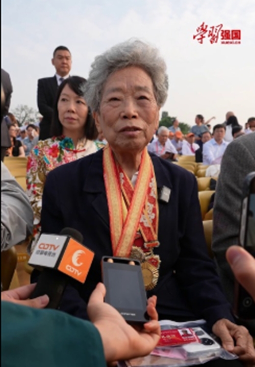 林珍,1935年5月出生,沈阳体育学院1990年退休教师。从“小鬼通讯员”“小护理员”到原东江纵队港九独立大队老游击战士联谊会会长,林珍的一生都同抗战岁月紧密相连。本次受邀参加观礼,她眼含热泪说:“当年尽了一点义务保家卫国,但是今天,国家给我们这么高的待遇,来天安门广场观礼,确实这心就要跳出来了。八岁的时候,在我姐姐的引导下,参加了港九大队的通信员,后来又参加了医疗队,当一个小护士,但是在医疗队当护士的时候,我最受教育了,为什么呢,这些战士,在艰苦的困难当中,不怕苦不怕牺牲,还要继续战斗,我也永远没有忘记他们的这种奋斗精神。年轻一代也要学习我们在奋斗过程的历史,不忘记中国人民团结在一起的力量。所以,我也希望大家都会传递下去。中华民族伟大复兴,还要靠我们全体人民跟着共产党去实现。”