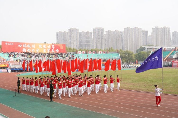 开幕式上,伴随着铿锵有力的进行曲,大学生国旗护卫队迈着整齐划一的步伐率先入场;红旗方队、花束方队、裁判员方队、教职工方队、各学院(校)运动员方队依次亮相,嘹亮的口号、整齐的队列,展现出师生昂扬向上的精神风貌,传递出团结奋进的磅礴力量。