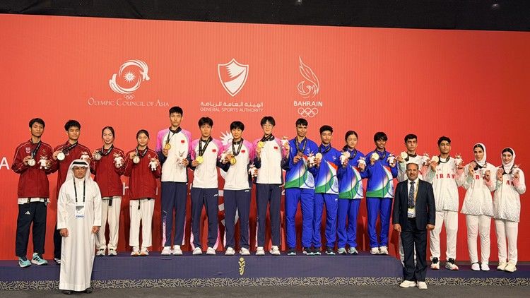 第三届亚洲青年运动会跆拳道项目比赛于10月26日落下帷幕。沈阳体育学院跆拳道运动员王文俊、刘浩然、高董函琦代表国家分别参加男子-73kg、男子63kg、混合团体比赛。最终王文俊、高董函琦参与的中国组合获得混合团体项目冠军,刘浩然获得男子63kg季军。 混合团体项目颁奖仪式(左五:高董函琦,左六:王文俊) 沈阳体育学院参赛运动员合影(从左至右:高董函琦,刘浩然,王文俊) 网址链接:辽望 辽宁日报:沈阳体育学院跆拳道运动员在第三届亚青会上获1金1铜 新闻作者: 责任编辑:全魁博 新闻日期:2025-10-30 点击:次