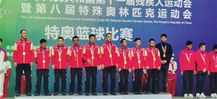 在全国第八届特奥会男子篮球比赛中,沈阳特奥男子篮球队代表辽宁参赛,最终在决赛中以24比18战胜浙江队获得冠军。在个人技术赛的比拼中,队员曲智显发挥出色,摘得桂冠。小伙子们登上领奖台的那一刻,教练员马涛心潮澎湃。比赛前三个月,10名特奥篮球队员集中进行了强化训练。由于这些运动员自身条件不一样,有的患有脑瘫,有的智力发育迟缓,马涛根据运动员各自特点,制定了科学的训练计划。