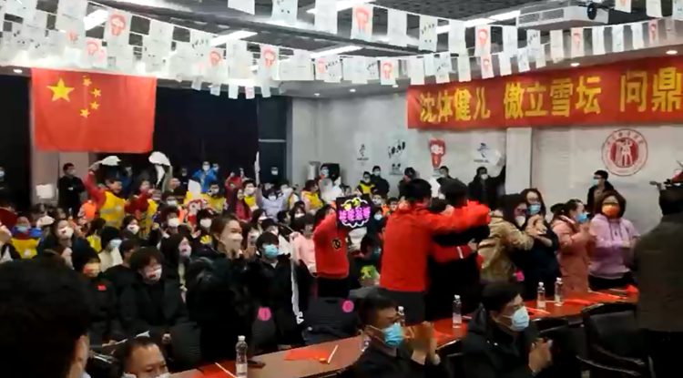 在徐梦桃学习和工作的沈阳体育学院,她的教练、同事和学生们共同观看了这场比赛,徐梦桃夺冠瞬间,观赛现场瞬间沸腾。