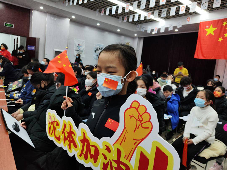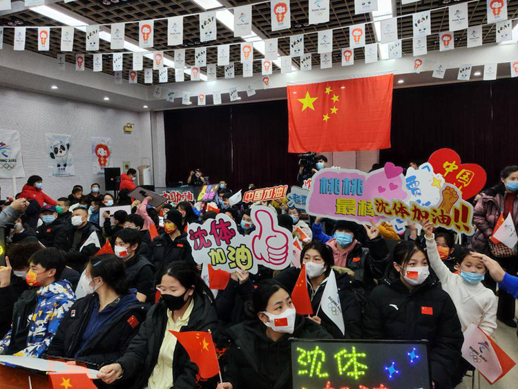 沈体师生为中国队助威