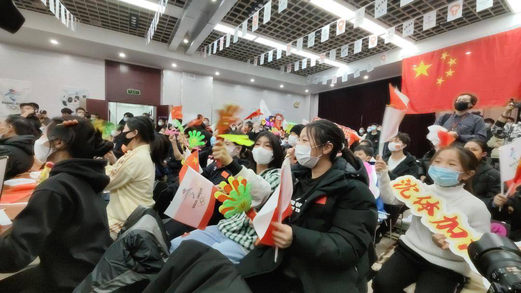 预赛时,无论徐梦桃、贾宗洋还是齐广璞登场,都会引发现场一片欢呼声,数十位沈阳体育学院自由式滑雪空中技巧队的小队员挥舞着助威牌,为中国队加油。中国队以预赛第一名成绩跻身决赛,这让大家对决赛更加充满期待。