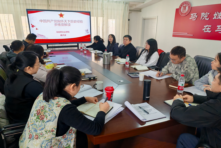 为深入学习贯彻习近平总书记关于教育的重要论述,认真贯彻落实全国教育大会和全省教育大会精神,加强我校高素质专业化思政课教师队伍建设,提升教书育人能力,实现我校思政课教师在各级各类教学竞赛、科研课题等方面高质量成果的产出,11月20日上午,马克思主义学院特邀请全国思政课年度影响力人物、全国思政课教学能手、教育部思政课教学指导委员会委员,沈阳航空航天大学马克思主义学院院长曲洪波教授作题为《思政课“以赛促教”讲好党的创新理论的思考》和《中国共产党胸怀天下历史经验多维度解读》学术讲座。讲座由马克思主义学院院长柳春清主持,全体思政课教师参加了讲座。