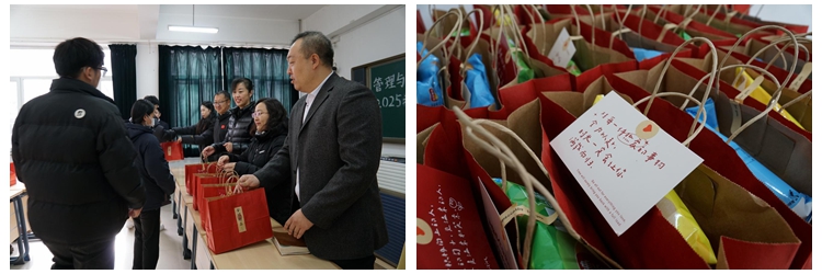 会议伊始,同学们观看了近年来考入各高校攻读硕博学位的学长学姐们发来的祝福视频,感受到了沈体精神的传承。随后,院长李芳、副院长邵凯、网络与新媒体教研室主任袁秋菊分别就考试流程、纪律要求、心态调节等方面结合个人经验为同学们做讲解和动员。在大家的期待中,学院领导老师为学生发放“考研暖心加油包”,内附文具套装、苹果、橙子、柿子、薯片、牛奶、巧克力等,寓意同学们“萍”稳上岸、心想事“橙”、“柿”“柿”如意、“薯”你成功、“牛”气冲天、“巧克”难关……