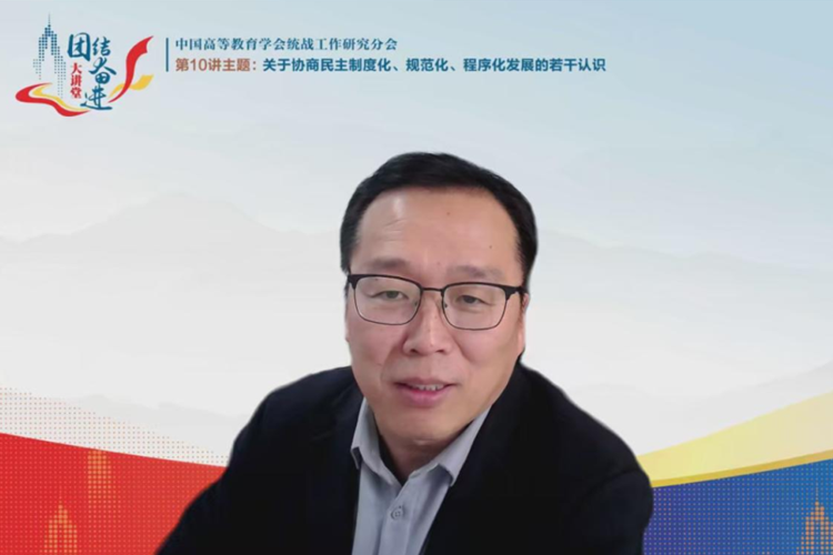 为贯彻落实党的二十大和二十届二中、三中全会精神,深入学习习近平总书记在庆祝中国人民政治协商会议成立75周年大会上发表的重要讲话精神,领会协商民主的精神实质和核心要义,中国高等教育学会统战工作研究分会于12月19日举办了“团结 奋进”大讲堂第10期报告会。陕西师范大学国家安全学院(政法与公共管理学院)院长、马克思主义学部副部长张亚泽教授作了题为《关于协商民主制度化、规范化、程序化发展的若干认识》的报告。我校统战干部和党外人士听取了报告。
