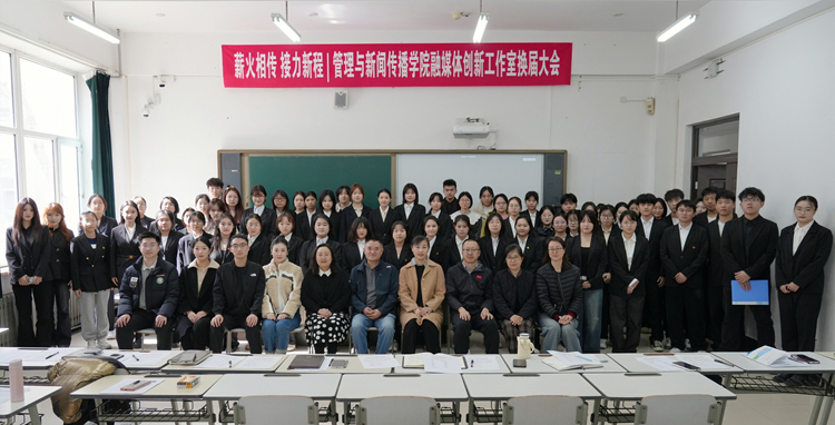 3月12日,管理与新闻传播学院融媒体创新工作室第四届换届大会顺利召开。学院党总支书记任宏声、院长李芳、党总支副书记徐昕彤、网络新媒体教研室主任袁秋菊、新闻教研室主任于业成、融媒体创新工作室指导教师刘晓红、以及各年级辅导员参加本次换届大会。