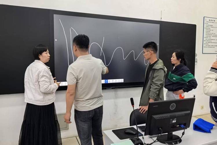 技术人员详细演示了手写识别、多屏互动等功能,并介绍了设备的无线连接、降噪调节等技术。教师们通过现场操作,体验了智能笔迹转换、一键保存等功能。参加培训的教师通过使用设备并结合授课特点,提出使用需求与优化建议,技术人员一一给予解答,现场互动热烈。