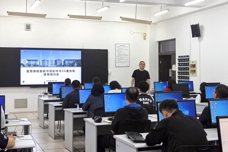 为推进教育信息化建设,提升教师智慧教学能力,5月14日下午,教务处在计算机房成功举办“智慧黑板智能书写软件与5G麦克风使用”专题培训。教务处副处长王建平主持培训会,50余名教师参加培训。
