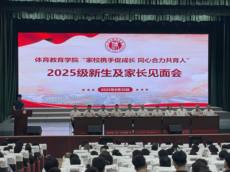 为加强家校协同共育,搭建家校沟通的桥梁,形成育人合力,8月30日,体育教育学院在大学生会堂举办“家校携手促成长 同心合力共育人”2025级新生及家长见面会。体育教育学院领导班子、教研室主任、2025级辅导员、全体新生及家长共同参加了此次见面会。会议由体育教育学院党总支书记李丁皓主持。