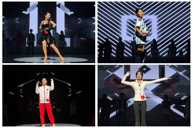 伴随着开场秀《青春铸魂・体韵飞扬》的动感旋律,大赛正式拉开帷幕。“风之彩”礼仪模特社团带来国风礼仪展示《十二风华・旗马同辉》,选手们身着传统服饰,步履款款间尽显中华礼仪的典雅韵味,将古典美学与现代风采巧妙融合。