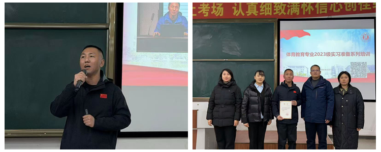 甘荔桔为国屾颁发了“体育教育专业大学生校外实习实训指导教师”聘书。同学们纷纷表示将把所学运用到实习实践中,锤炼专业技能,成长为新时代合格体育教师。