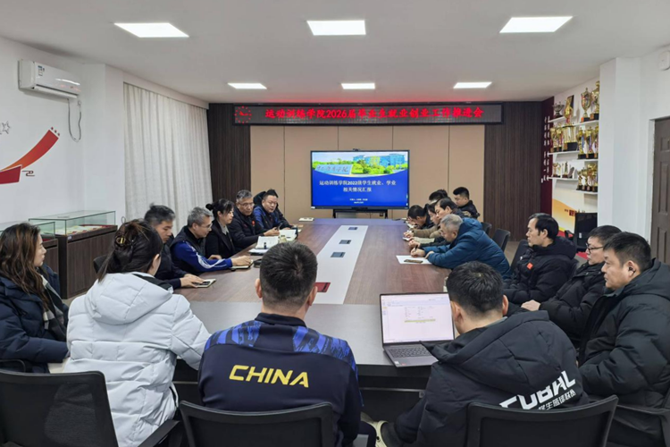 1月8日,运动训练学院召开2026届毕业生就业创业工作推进会。学院领导班子、办公室成员、教研室主任、本科生班导师、硕士研究生导师组组长及毕业年级辅导员参会。党总支书记徐昕彤主持会议。