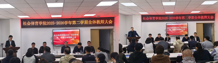 3月4日,社会体育学院在游泳馆二楼会议室召开2025-2026学年第二学期全体教师大会。学院领导班子及全体教师参会,会议由办公室主任温建飞主持。