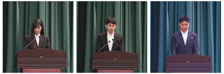 2022级学生代表覃诗瑜、陈以峰分享实习感悟与成长,结合自身经历为学弟学妹提供实习建议;2023级学生代表李雨航表达对实习的期待与决心,表示将以学长学姐为榜样,严守纪律、虚心学习,力求学有所成。