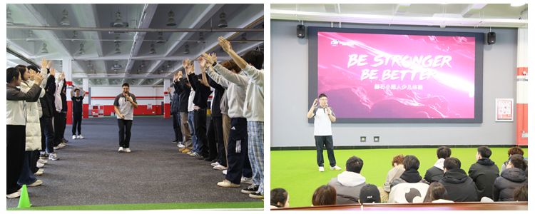 活动中,企业负责人详细介绍了赫石少儿体能的发展历程、办学规模、课程体系及行业优势,重点解读2026年人才升级计划,围绕体能教练、产研实习生、师训实习生、教学管培生四类岗位的工作职责、任职要求、薪资待遇、住宿保障及晋升通道进行全面说明。同时结合少儿体能行业发展趋势,开展职业技能与行业认知培训,讲解岗位核心能力要求、职业成长路径等内容,帮助学生明晰行业标准与职业方向。现场,还进行了少儿体适能课程的实操演练。