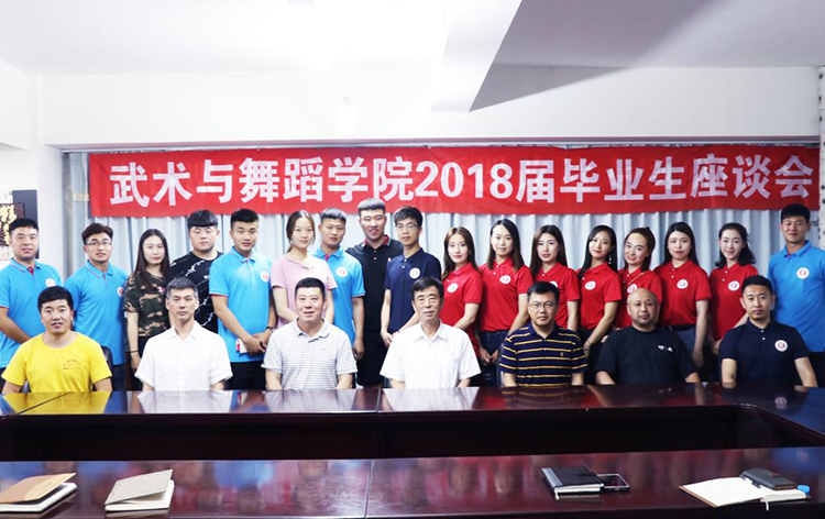 6月19日中午,武术与舞蹈学院在武体馆二楼会议室召开2018届毕业生代表座谈会,武术与舞蹈学院领导班子、办公室相关人员、毕业年级辅导员以及毕业生代表参加座谈会。