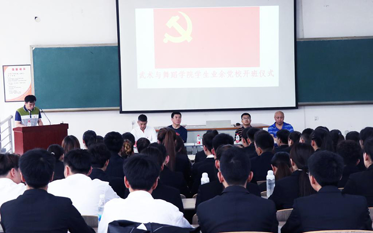 6月6日下午,武术与舞蹈学院第一期学生业余党校开班仪式在教学楼111教室举行,院长林勇虎、党总支书记刘振强及其他班子成员和50名学员参加开班仪式,学生一支部书记申俊奇主持开班仪式。
