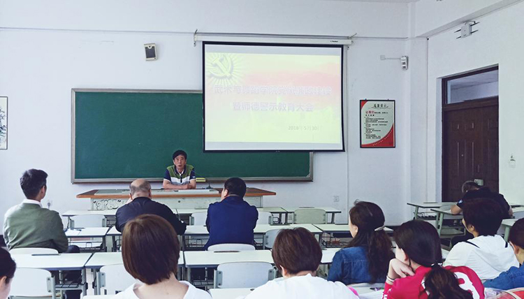 会上全体教师共同学习了教育部“六禁令”高校教师师德“红七条”,并通报了学校近期处理的四起违纪事件。