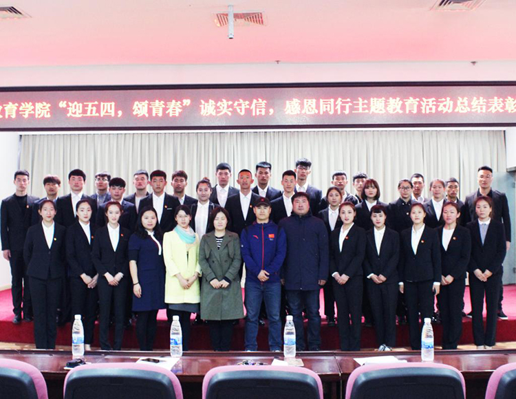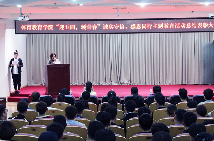 2018年3月末,根据校学生工作部(武装部)《关于开展“感恩•诚信”系列教育活动的通知》的相关要求,正值纪念五四运动99周年即将到来之际,结合我校立德树人根本任务及青年学生实际情况,体育教育学院组织开展“诚实守信,感恩同行”主题系列教育活动,共进行主题团会、演讲比赛、主题征文、知识竞赛等活动,在青年学生间积极培育和大力弘扬了社会主义核心价值观,深入推进了学生思想政治教育工作的开展,加强了同学们对感恩、诚信的认识。本次大会对体育教育学院开展的“感恩,让生命更精彩”主题征文比赛和“开启新征程,实现新作为”知识竞赛的54名获奖学生进行了奖励。对体育教育学院“诚实守信,感恩同行”主题教育活动中8名团课优秀教员及20名优秀组织工作者进行了表彰。