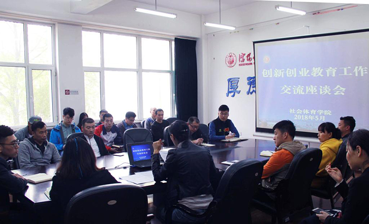 5月2日下午,社会体育学院在学院会议室召开创新创业教育工作交流座谈会,社会体育学院党总支副书记赵宁、副院长宛霞及创新创业项目教师团队参加了此次会议,会议由副院长宛霞主持。