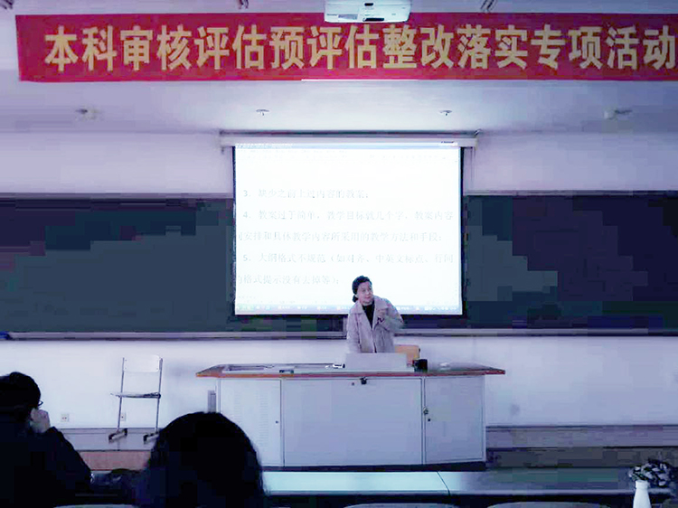 副院长姚瑶反馈了评估准备存在的问题,并对教学管理制度进行了解读。她强调,现在正值评估整改工作的关键期,希望全体教师及教学管理人员规范行为、规范管理,相互分担工作、相互补台。党员教师要起到模范带头作用,大家齐心协力、团结一致,保障评估工作取得圆满成功,以此提升教学质量。