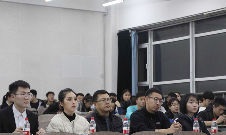 师生在现场听取演讲