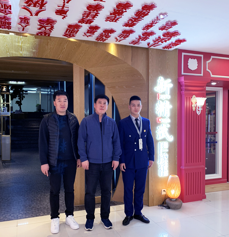 副书记马军(中)、辅导员于国哲(左一)在新精武教育培训基地与馆长合影