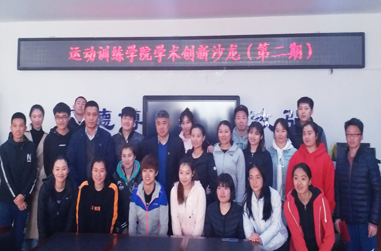 社科中心主任董传升(中),运动训练学院党总支书记尤兵(右)、副院长张麟寰(左)在会场