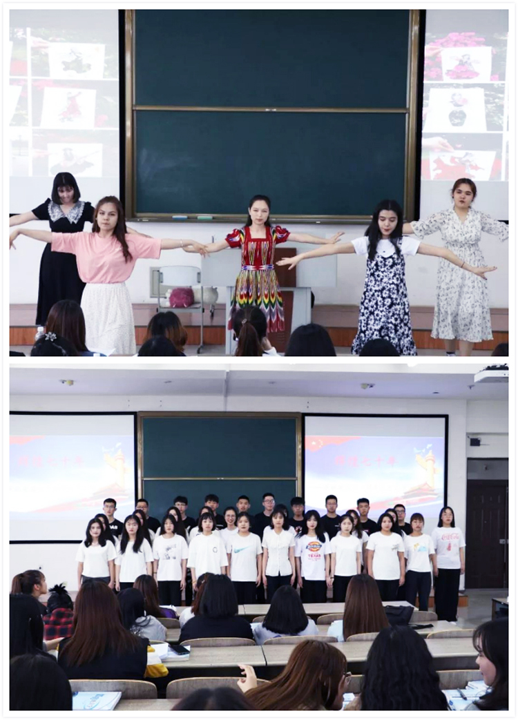 经过两周的紧张排练,同学们通过表演,展现了中国共产党成立七十年来我国取得的辉煌成就。活动中同学们载歌载舞,让爱国主义精神升华为个人奋斗的力量。此次活动延展至第二课堂,第一课堂的教学成效得到了巩固和延展,为提升人才培养质量起到了良好的促进作用。