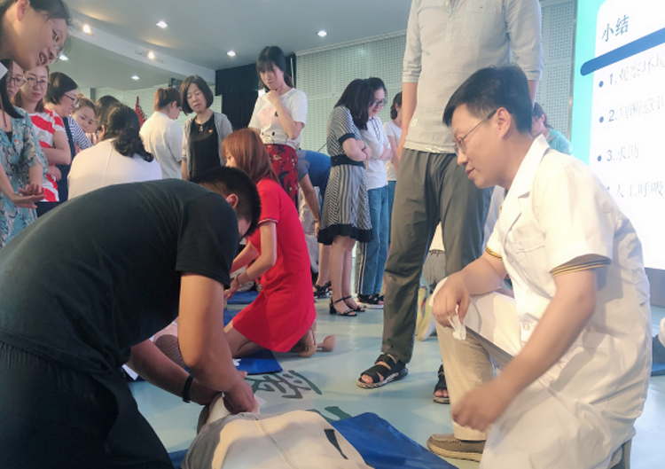 6月24日下午,为了更好践行“两学一做”学习教育,充分发挥共产党员先进性,运动生理生化教研室党支部教师党员和学生来到沈阳市浑南新区第二小学,开展了以“运动生理生化党日活动-心肺复苏术(CPR)培训”为主题的党日活动,对浑南二小全体老师进行心肺复苏术的培训。