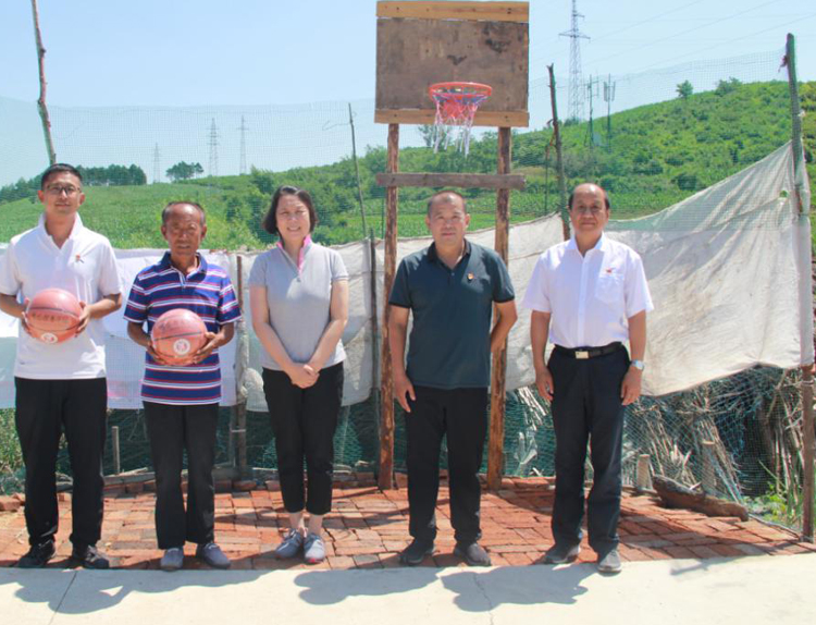 曹继红、社会体育学院领导班子和沈阳药科大学驻明德乡党委第一副书记廉益人、我校驻东平村第一书记杨旭、东平村党支部书记吕守信等,在东平村玉书屯篮球架前举行了篮球捐赠仪式。